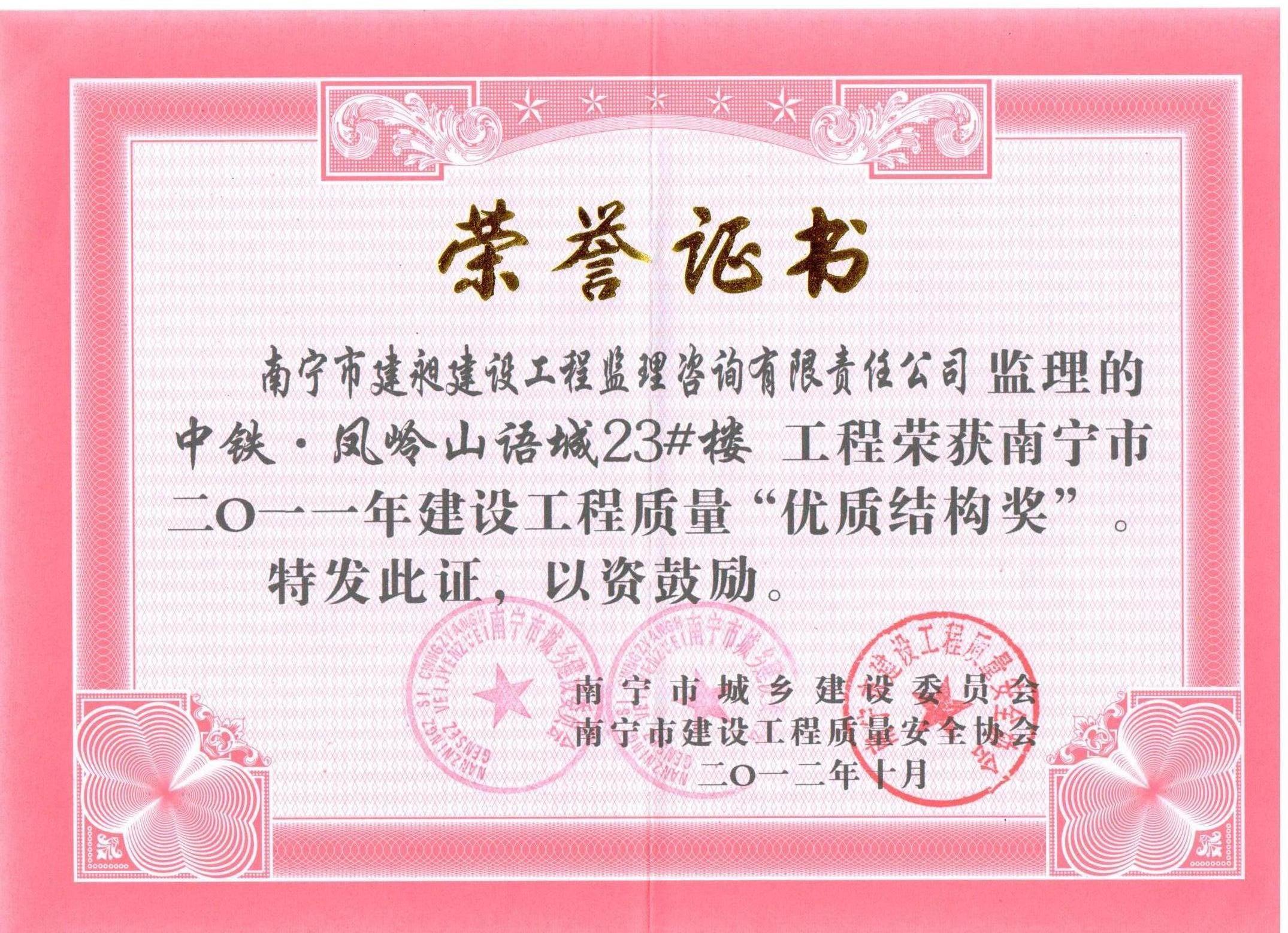 下一篇:我公司被評為南寧市2013年“先進監(jiān)理單位”榮譽稱號