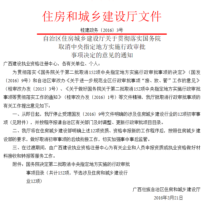 • 自治區(qū)住房城鄉(xiāng)建設(shè)廳關(guān)于貫徹落實國務(wù)院取消中央指定地方實施行政審批事項決定的意見的通知(桂建政務(wù)〔2016〕3號)